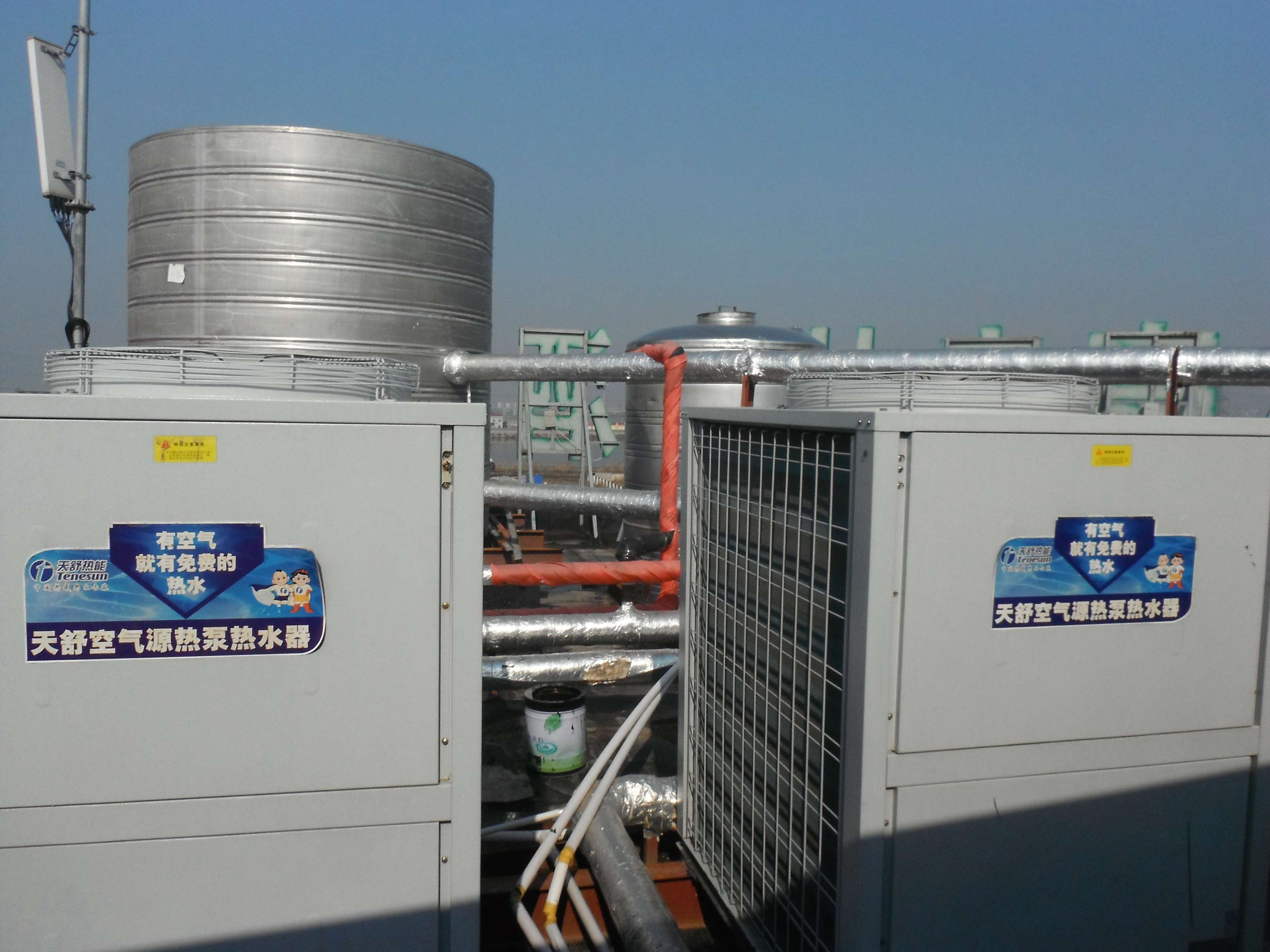 項(xiàng)目位于滄州市東部,瀕臨渤海灣,是一個(gè)新興的開發(fā)區(qū)。該酒店位于黃驊港中心,每天日用水量為20噸,使用天舒公司2臺(tái)超低溫機(jī)組。該工程完成時(shí)間距今約3個(gè)月左右,目前運(yùn)行穩(wěn)定,在酒店入住率將近滿負(fù)荷的情況下,在未使用電輔助加熱的情況下,也能很好地滿足酒店的熱水需求。