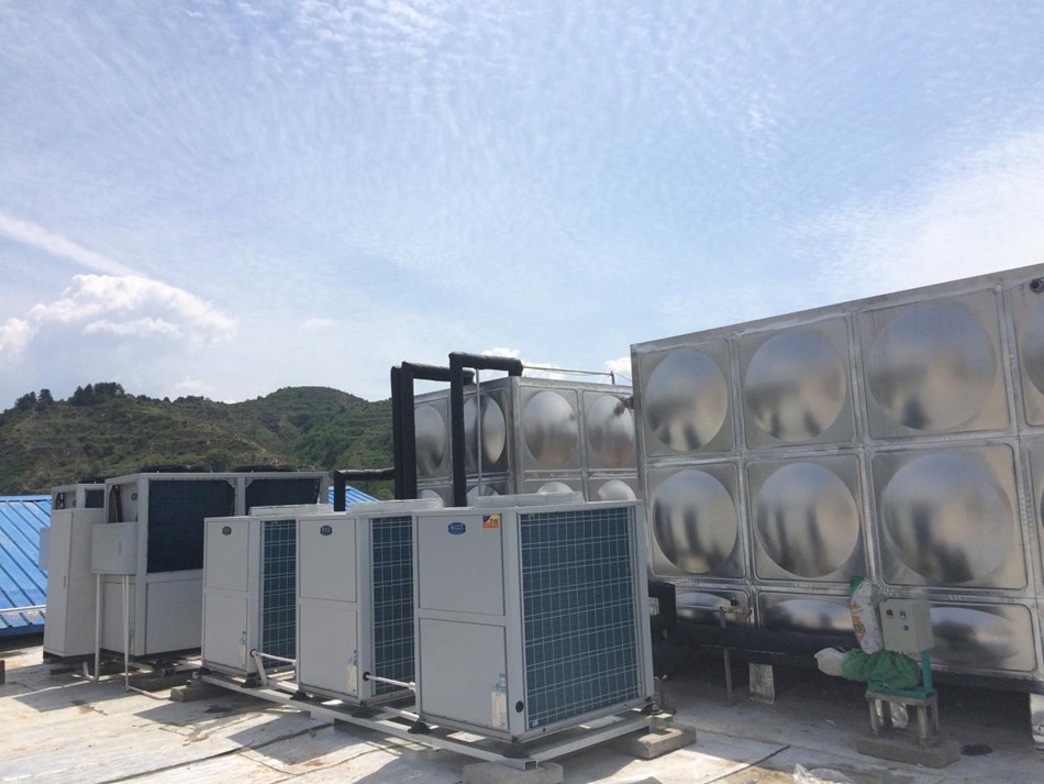 項目要求提供夏季用熱水、采暖等,實際采暖面積1200平米,天舒采用2臺24匹機組和3臺12匹機組為其保障每天20噸熱水及采暖,末端采用地暖管,機組運行至今,情況良好。