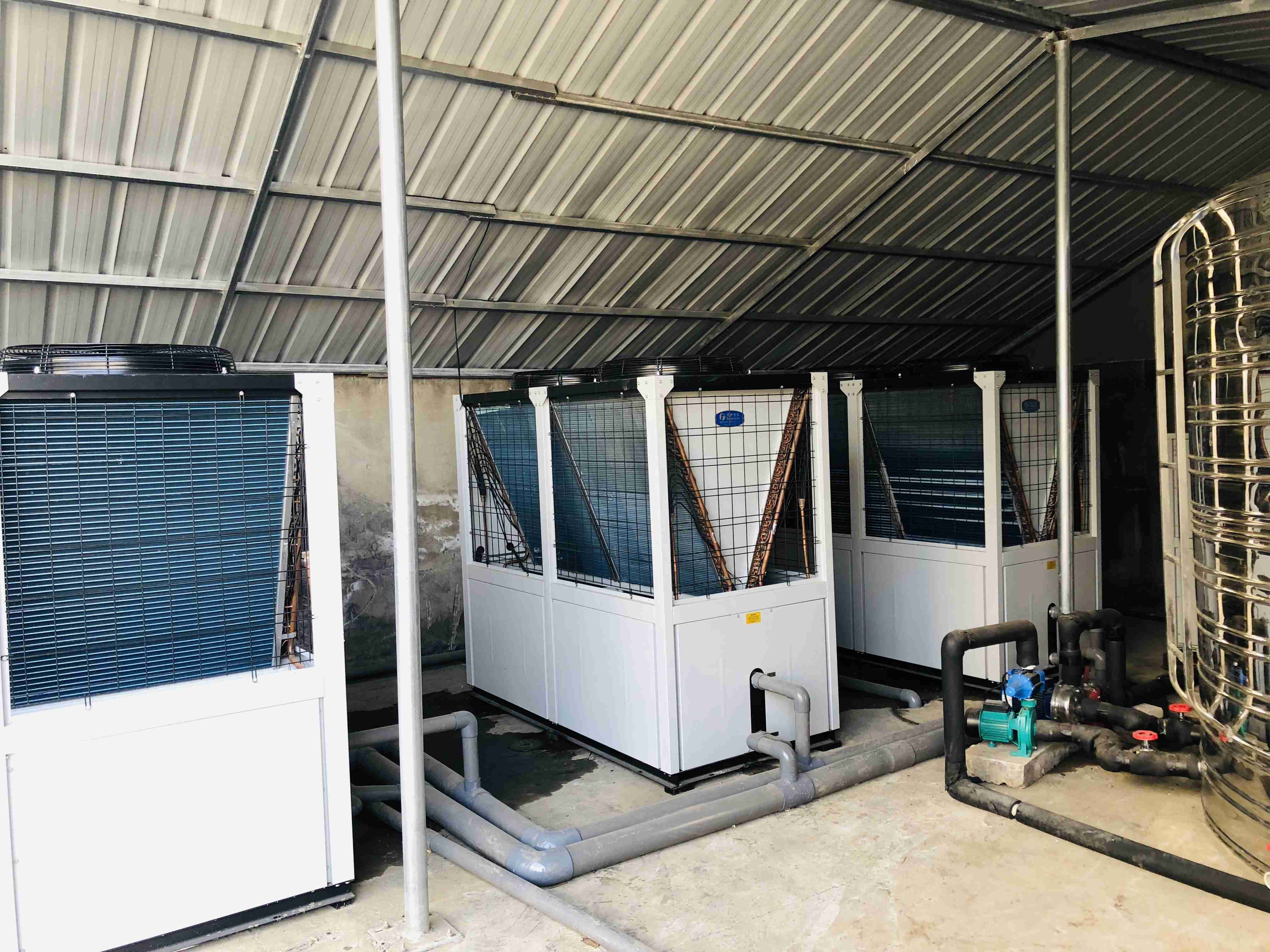 蚌埠大美健體俱樂(lè)部位于蚌埠新二中南側(cè),總占地面積40000平方米,包括室內(nèi)實(shí)木籃球館、實(shí)木羽毛球館、室內(nèi)足球館、游泳館、蹦床館、器械健身館等多個(gè)場(chǎng)館。附設(shè)有休息室、娛樂(lè)室、會(huì)議室、洗浴室、吸煙區(qū)等功能區(qū)域。一個(gè)23*20*1.6米泳池,10T淋浴熱水,采用3臺(tái)天舒熱能空氣源泳池恒溫機(jī)組和1臺(tái)天舒熱能空氣源熱泵熱水機(jī)組來(lái)滿足使用需求。