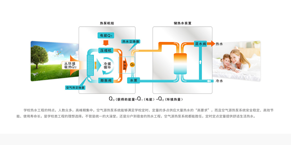 學(xué)校設(shè)備安全性排第一,運行過程中需要穩(wěn)定可靠地為全校師生提供生活熱水。
